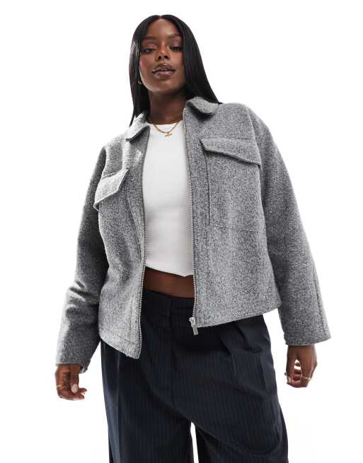 Yours - Veste chemise courte en laine - Gris