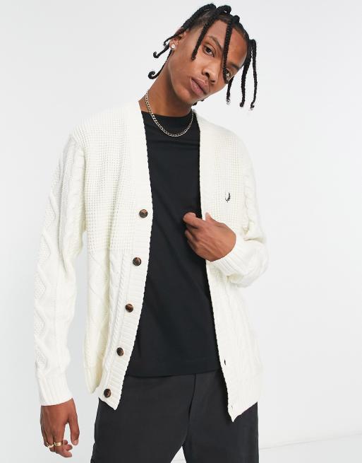 Fred Perry cable knit cardigan in white