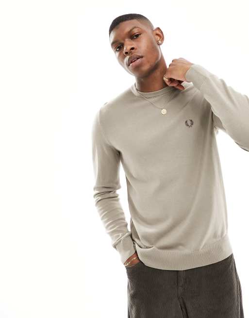 Fred Perry classic crew neck jumper in warm grey