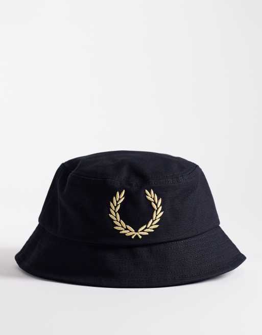 Fred Perry large logo canvas bucket hat in black