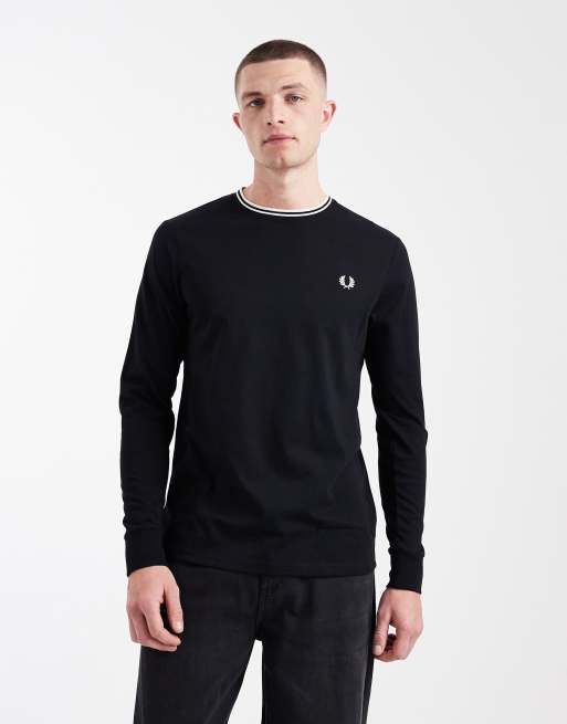Fred Perry long sleeve twin tipped logo t-shirt in black
