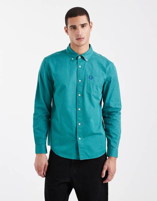Fred Perry relaxed fit washed twill pocket logo shirt in teal