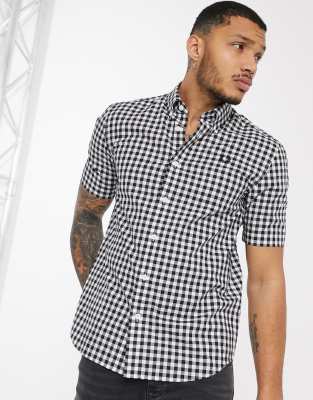 Fred Perry short sleeve gingham shirt in black and white