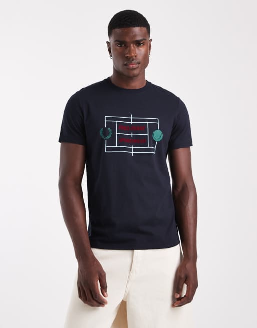 Fred Perry tennis court print t-shirt in navy