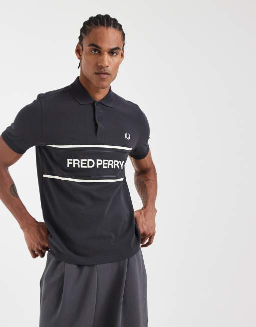 Fred Perry text logo graphic polo shirt in grey