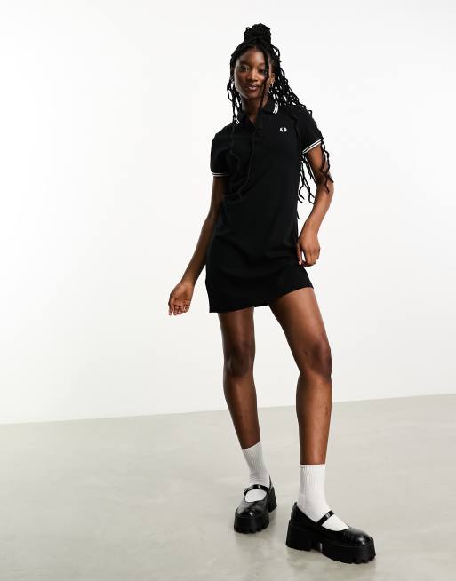 Fred Perry twin tipped polo shirt dress in black