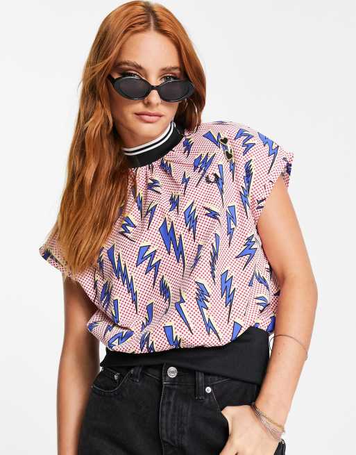 Fred Perry X Amy Winehouse lightning bolt print top in multi