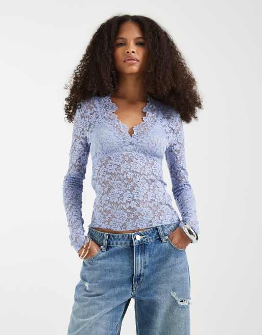 Free People all day long sleeve lace top in dawn breeze
