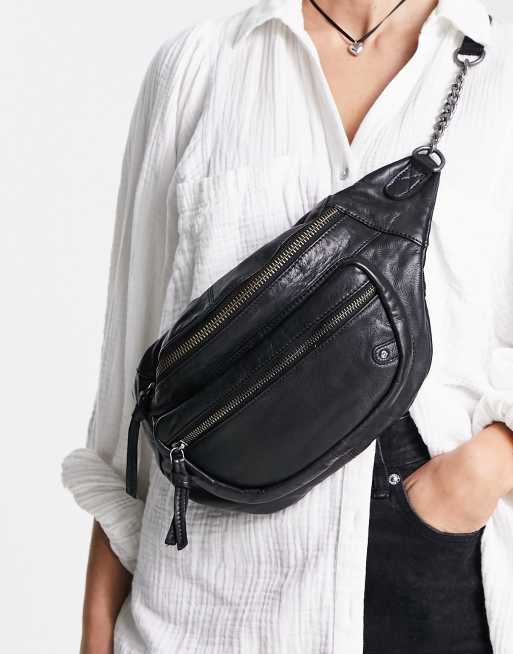 Free People archer leather sling bag in black