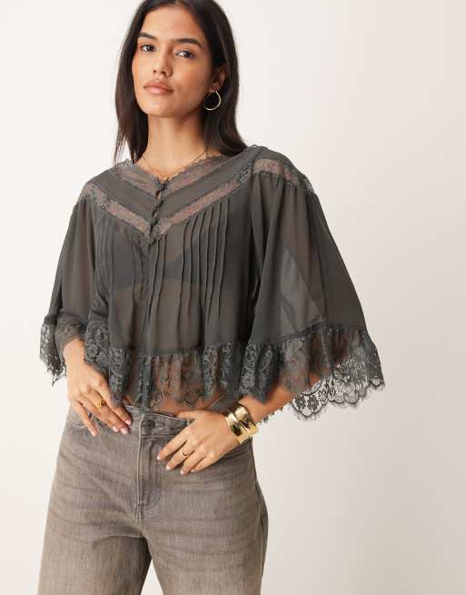 Free People bali lace blouse in black
