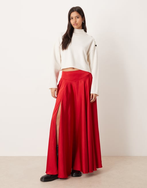 Free People chilco maxi skirt with side split in salsa red