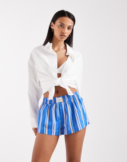 Free People day to day mini boxer short in cobalt stripe combo