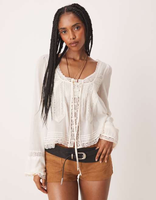 Free People evermore long sleeve button down blouse in ivory