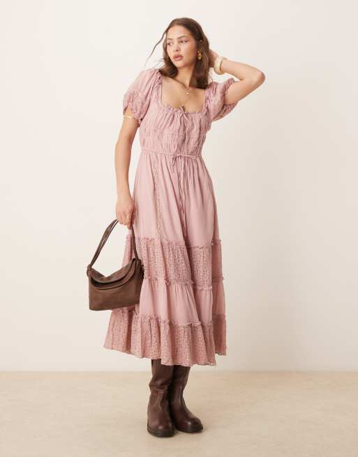 Free People falling sun lace insert midi dress in pale mauve