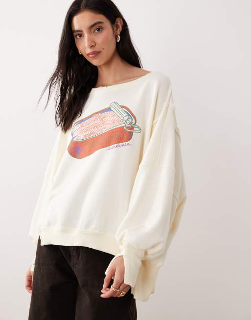 Free People graphic slouchy knit in sardine combo