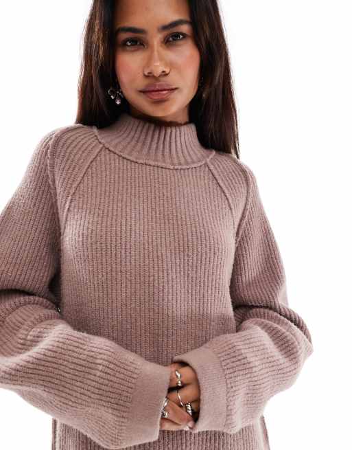 Free People high neck oversized soft jumper in antler brown