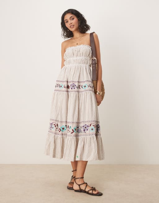 Free People kalani striped bandeau maxi dress in ivory
