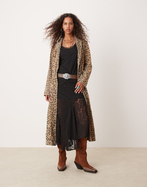 Free People leopard denim duster coat in multi