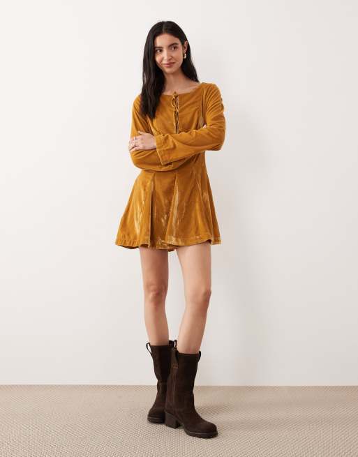 Free People linney velvet mini dress in golden syrup