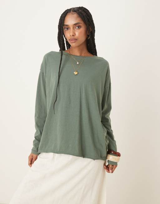 Free People nina long sleeve t-shirt in topiary green