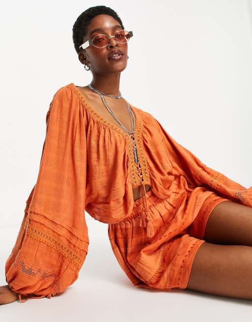 Free People Paloma embroidered top and short set in copper