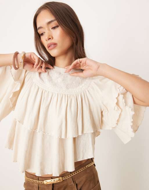 Free People rose party ruffle t-shirt in sugar