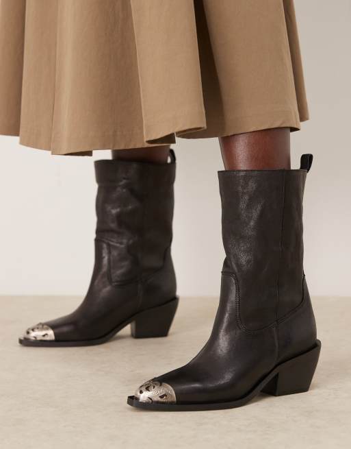 Free People snake toe detail pull on cowboy boots in black