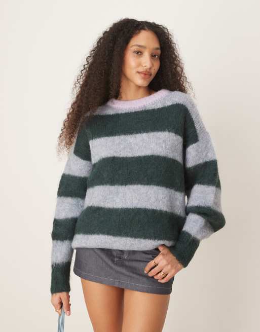 Free People striped alpaca blend oversized jumper in green and grey