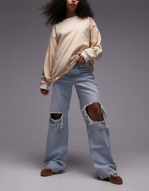 Free People tinsley baggy distressed high rise jeans in sky blue