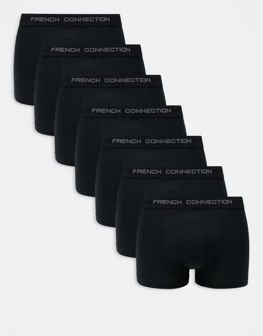 French Connection 7 pack boxer trunks in black