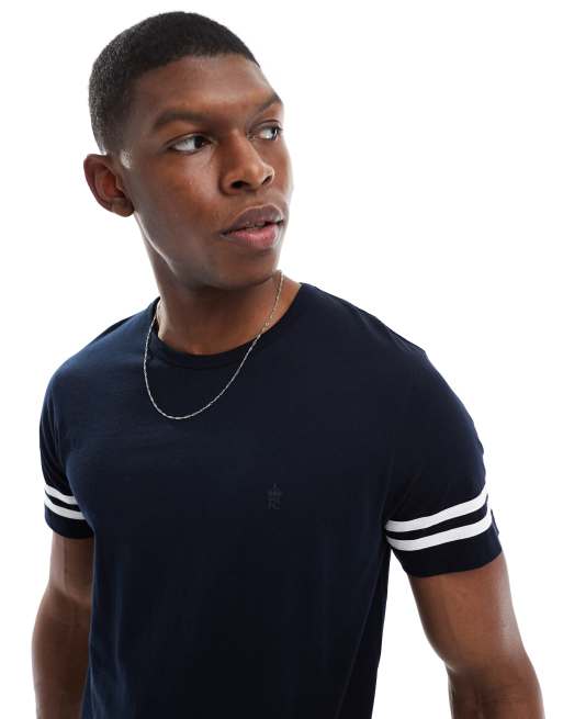 French Connection crew t-shirt with arm stripes in navy and white