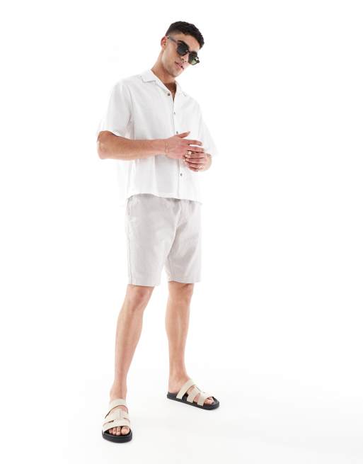 French Connection linen drawstring shorts in stone