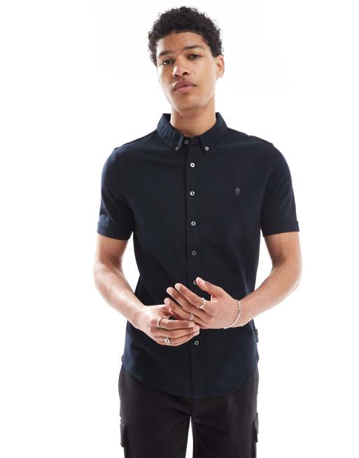 French Connection short sleeve pique button through polo in navy