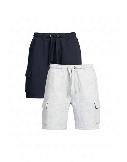 French Connection 2 pack cotton blend jersey cargo-style shorts in navy