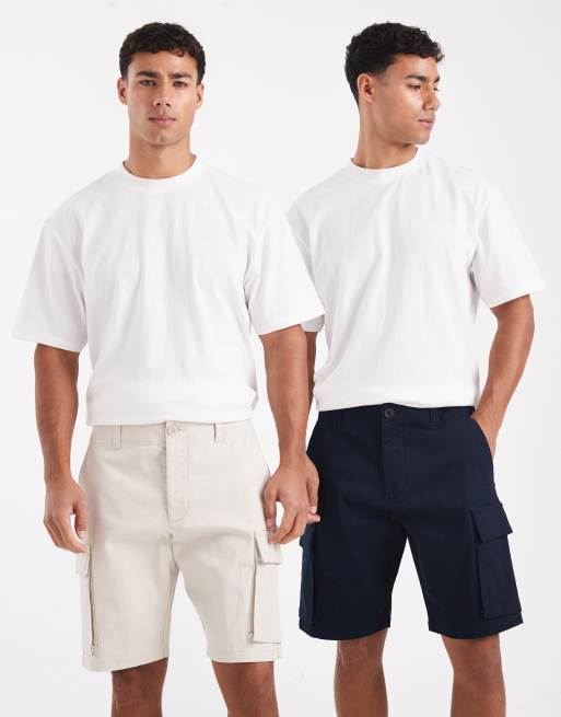 French Connection 2 pack cotton cargo shorts in navy