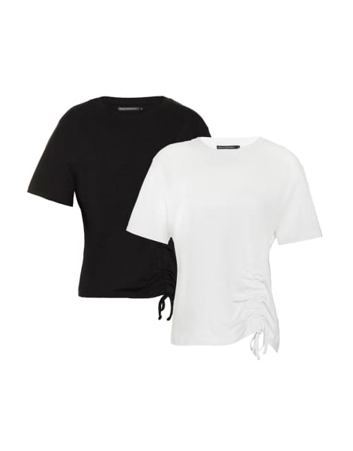 French Connection 2 pack cotton ruched seam crew neck short sleeve tops in black