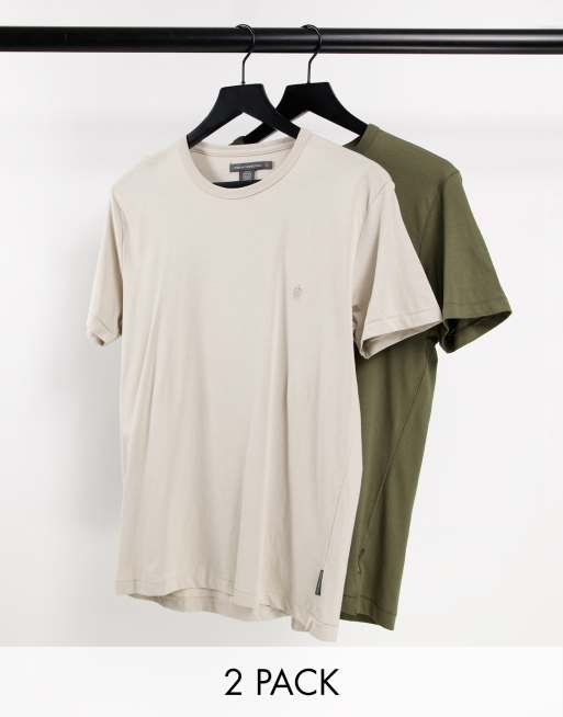 French Connection 2 pack crew neck t-shirt in khaki & stone