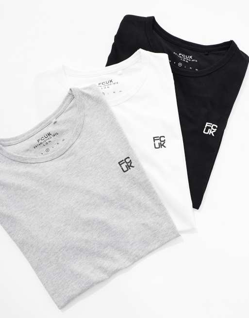 French Connection 3 pack cotton crew neck short sleeve fcuk t-shirts in black