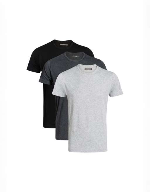 French Connection 3 pack cotton crew neck short sleeve t-shirts in charcoal
