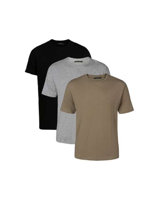 French Connection 3 pack cotton crew neck short sleeve t-shirts in khaki