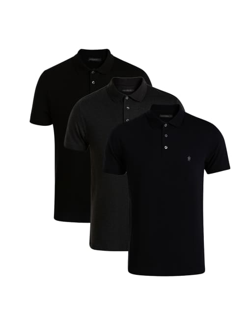 French Connection 3 pack cotton short sleeve polo shirts in charcoal