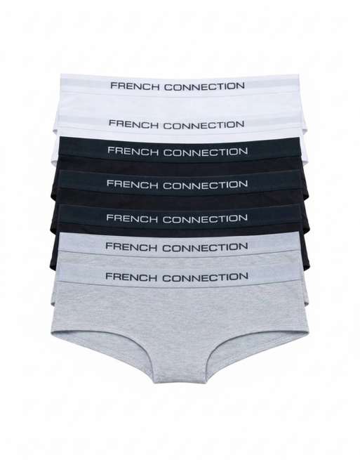 French Connection 7 pack cotton ladies hipster full briefs in grey