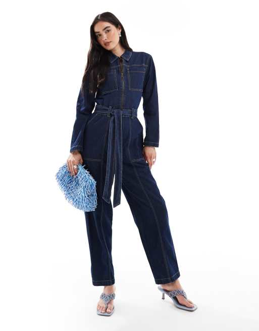French Connection barrel leg denim boiler suit in dark indigo