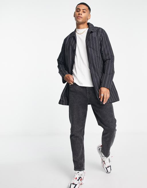 French Connection black pinstripe funnel neck mac jacket