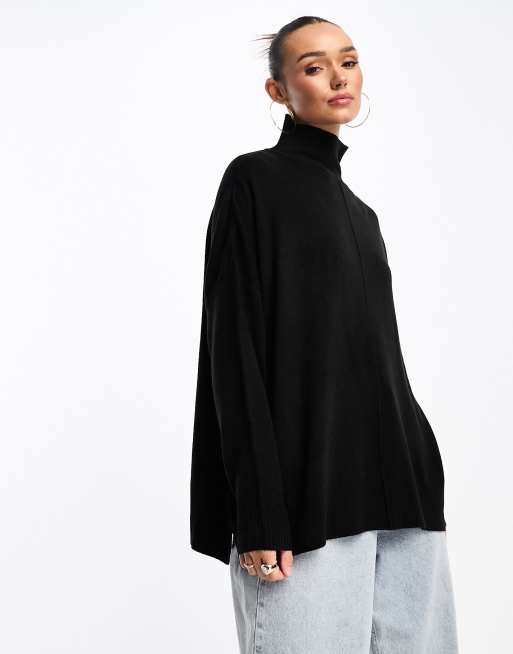 French Connection centre seam oversized roll neck jumper in black