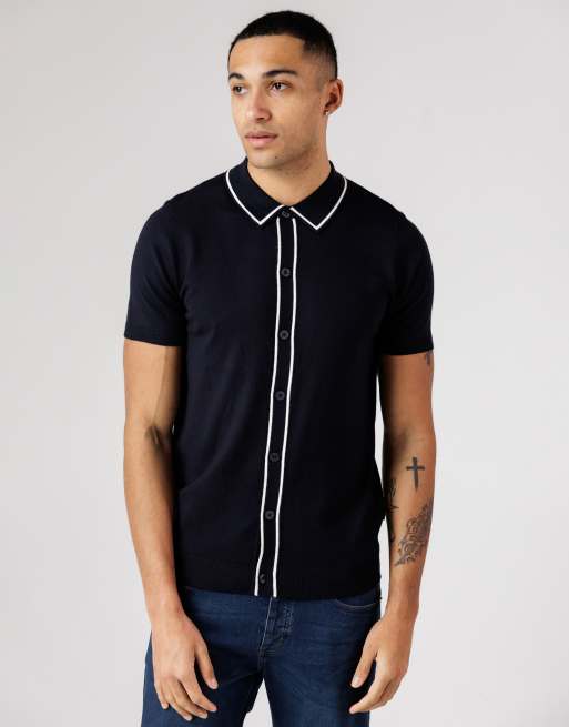 French Connection Contrast trim short sleeve button-up polo shirt in navy