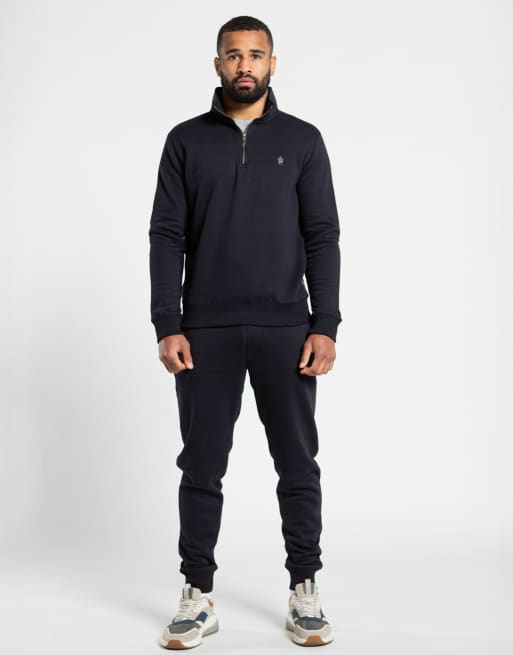 French Connection Cotton blend 1/2 zip jumper and jogger tracksuit co-ord in navy