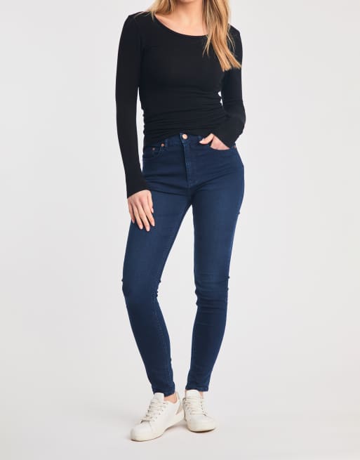 French Connection Cotton blend stretch high rise skinny denim jeans in blue