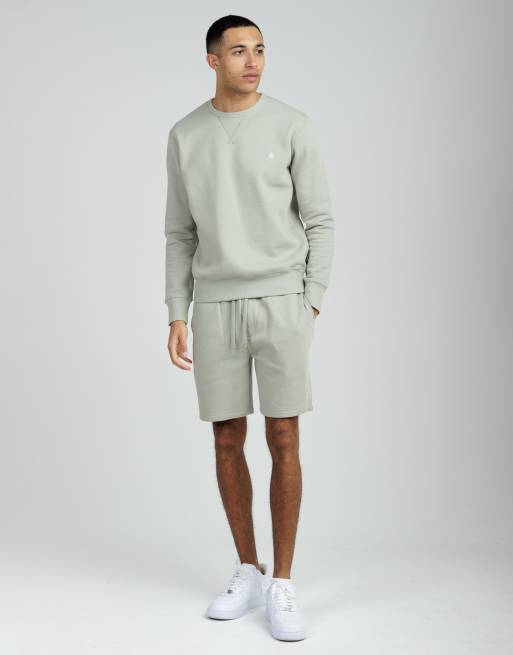 French Connection Cotton blend sweatshirt and shorts co ord set in light green