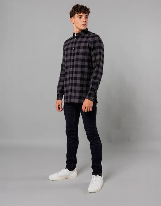 French Connection Cotton large gingham flannel long sleeve shirt in charcoal